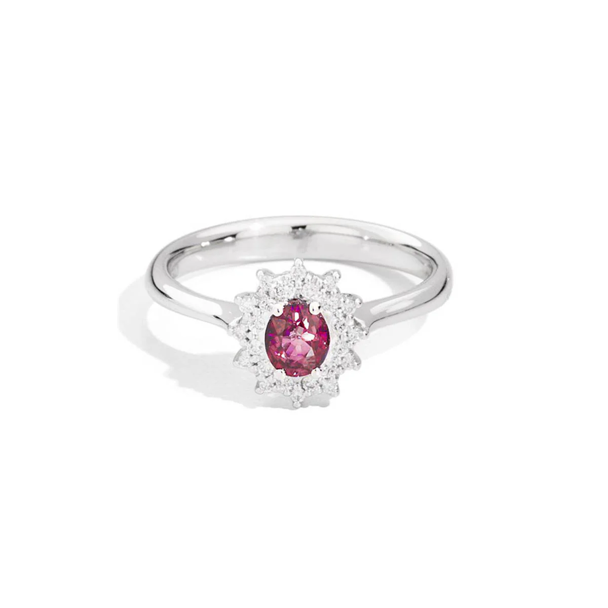 Anello Camelia diamanti e rubino taglio ovale | Recarlo