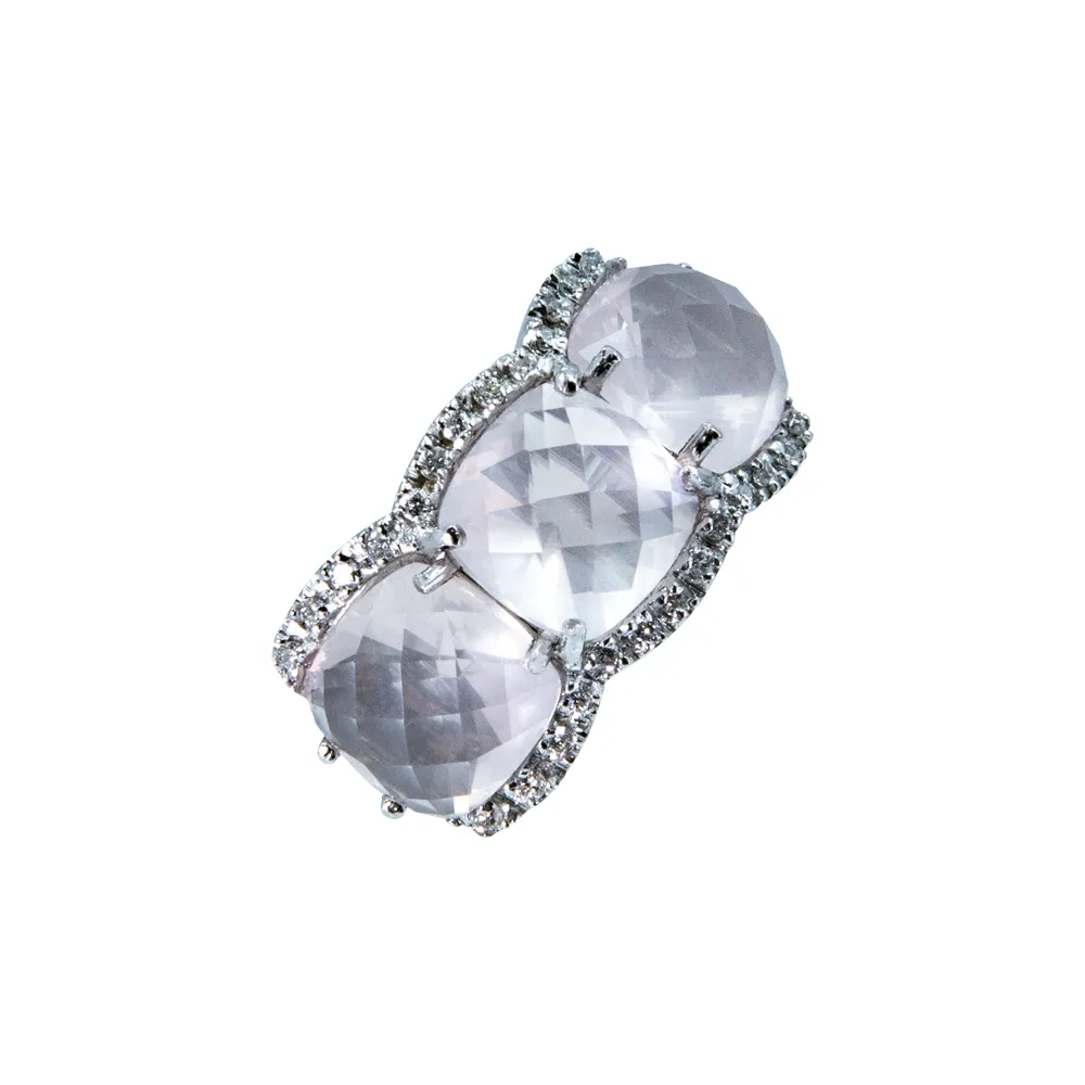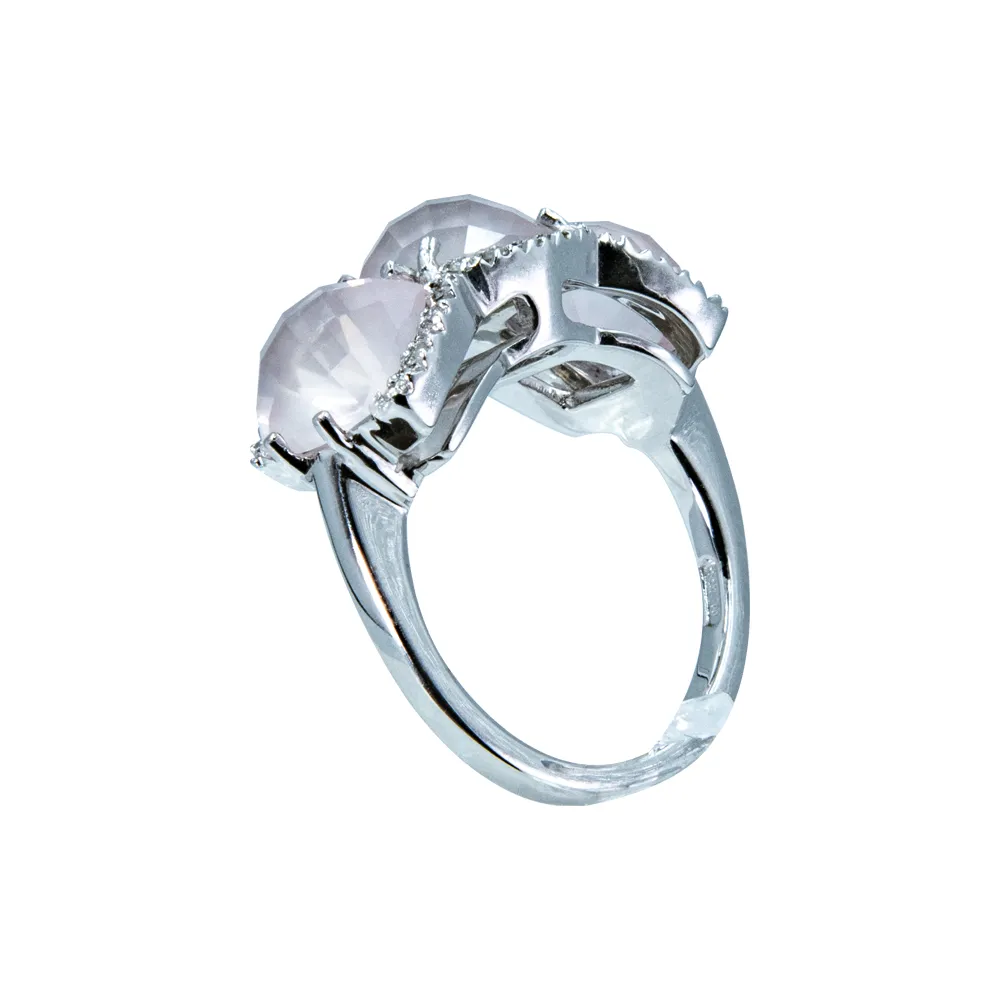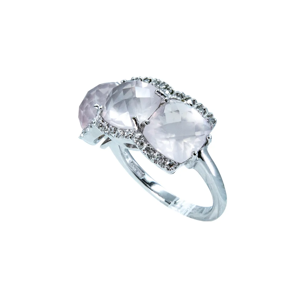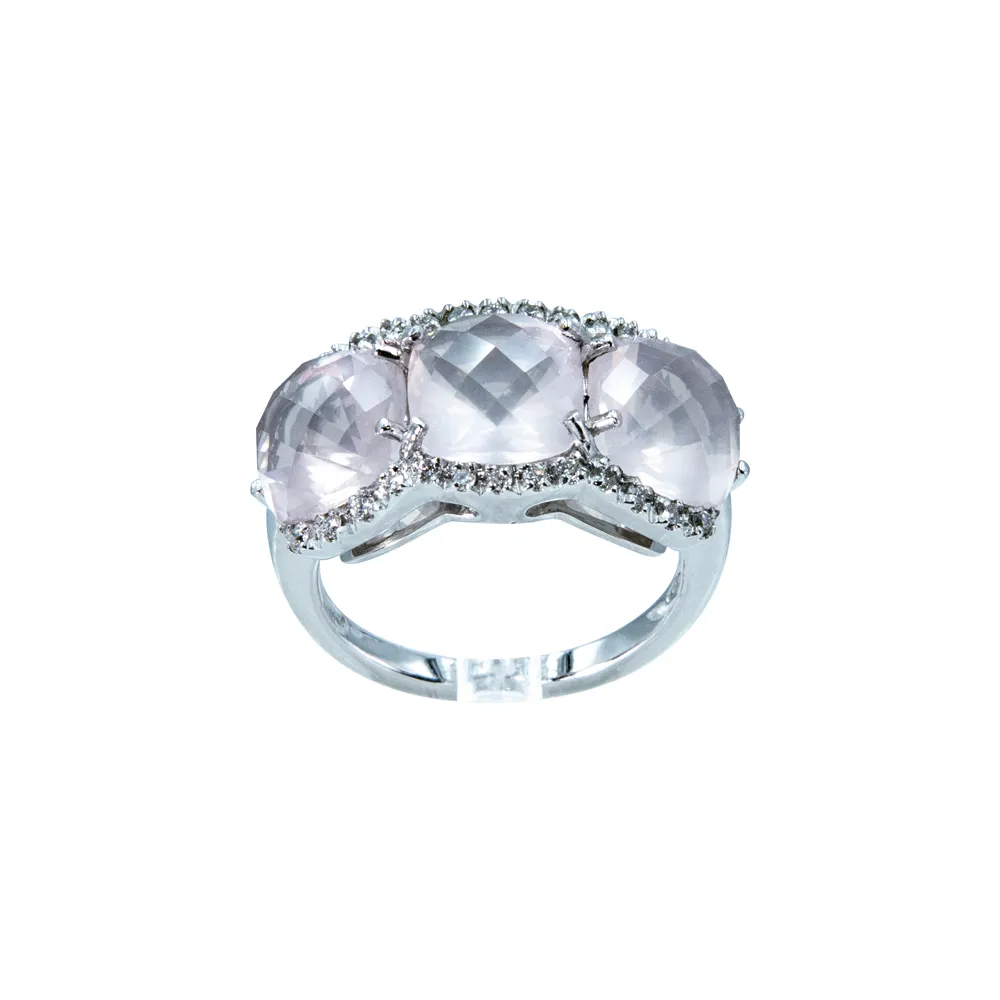 Anello in oro bianco 18kt linea colore con diamanti e quarzo rosa. Peso complessivo 8,90gr