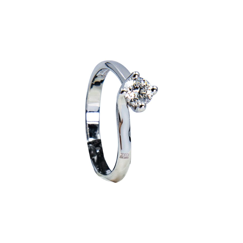 Anello Solitario in oro bianco 18kt – Pietra principale: Diamante 0,45 ct Colore: F – Purezza vs