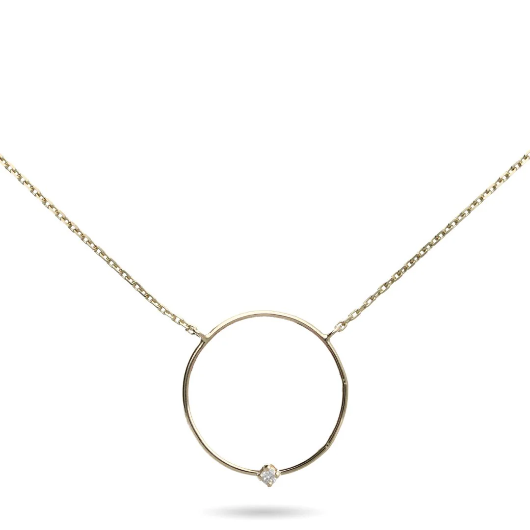 Indossata da sola come simbolo personale o abbinata ad altri gioielli della collezione Filodamore, la collana a cerchio con diamante diventa espressione di armonia, continuità e legami che durano nel tempo.