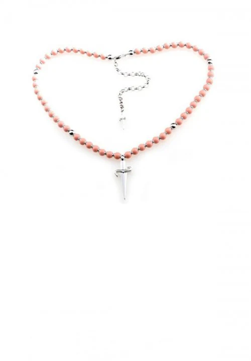Collana rosario Cesare Paciotti con palline rosa e spada acciaio unica e splendida sia per uomo che per donna