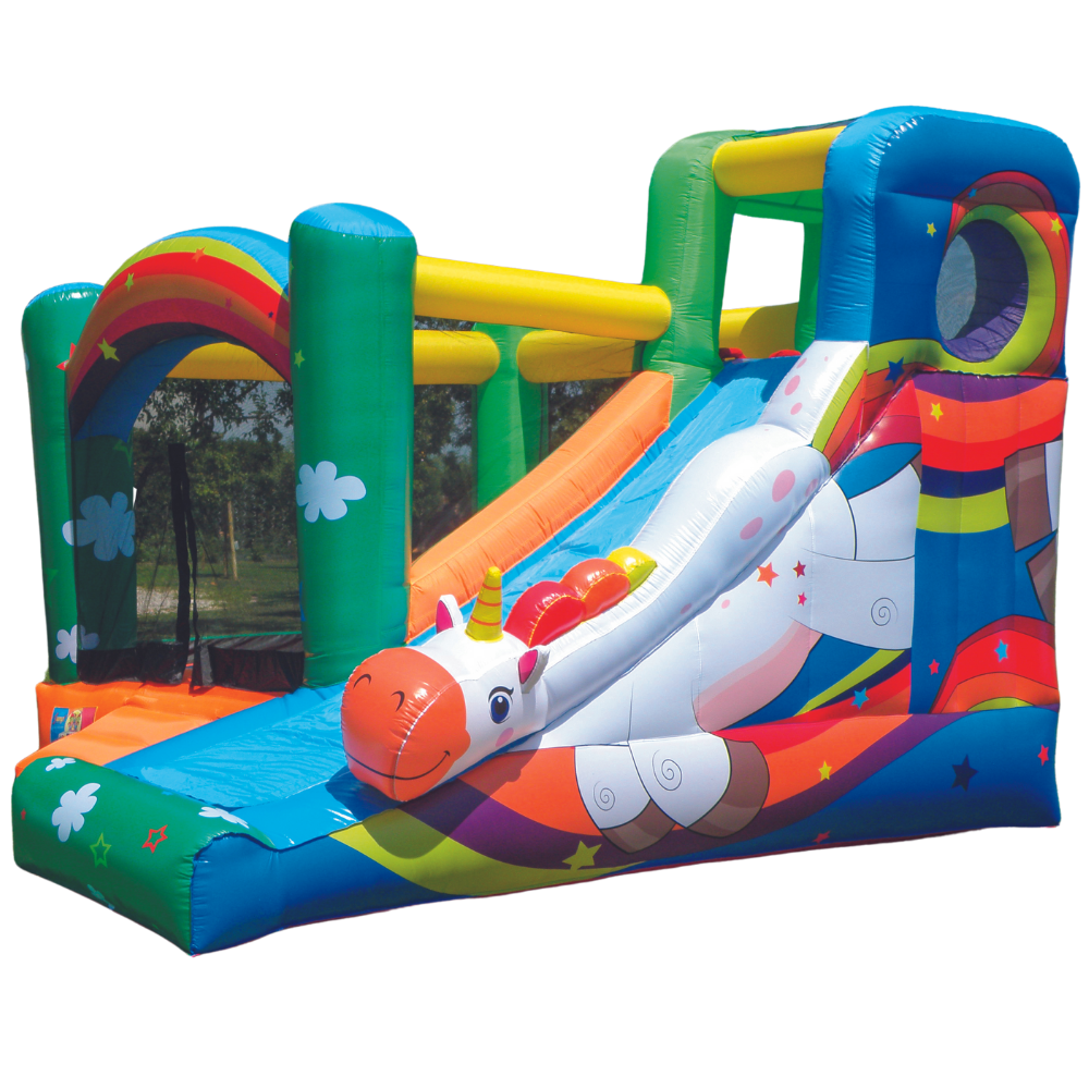 Preparati per l’emozione pura con questo straordinario gonfiabile, ideale per entusiasmanti gare di scivolate! Protagonisti sono i due grandi scivoli con tunnel, e l’area di arrampicata che sfida anche i più bravi scalatori. La sicurezza è garantita dalle reti protettive e da un’entrata posteriore dotata di chiusura in velcro. ‘COMBO’ non è solo un gioco gonfiabile, è un’avventura indimenticabile che porta il divertimento a nuove vette, perfetto per bambini attivi che amano l’azione.