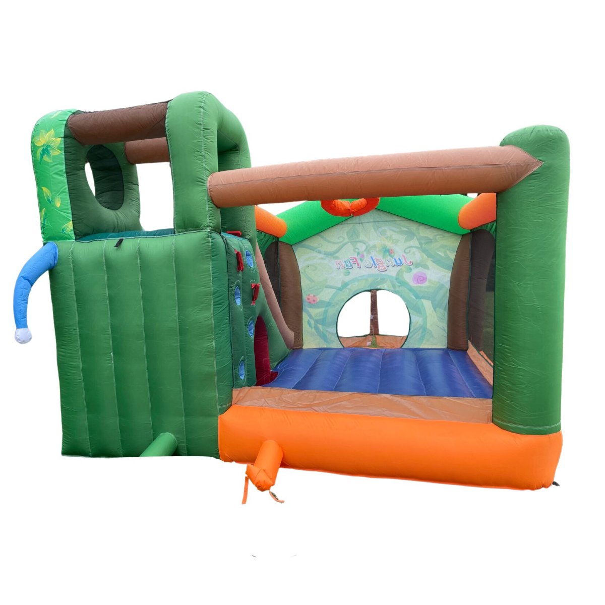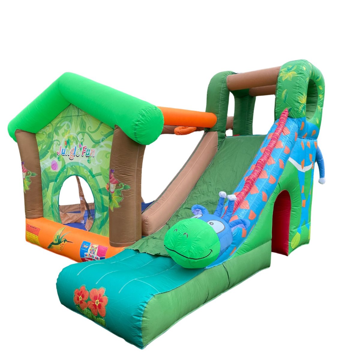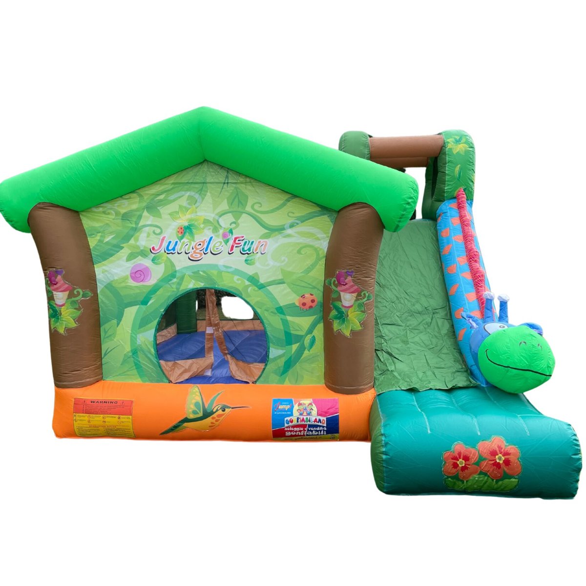 Avventurati in ‘JUNGLE FUN‘, un viaggio nel cuore di una giungla selvaggia, un parco giochi dove i bambini possono esplorare e giocare in un ambiente sicuro e stimolante. Una vasta superficie per saltare ti invita a momenti di pura energia, lo scivolo di medie dimensioni offre scivolate emozionanti, mentre l’area di arrampicata sfida i piccoli avventurieri. Il canestro aggiunge un tocco sportivo al divertimento. ‘JUNGLE FUN’ è un mondo di gioco dove natura e azione si incontrano per creare un’esperienza indimenticabile.