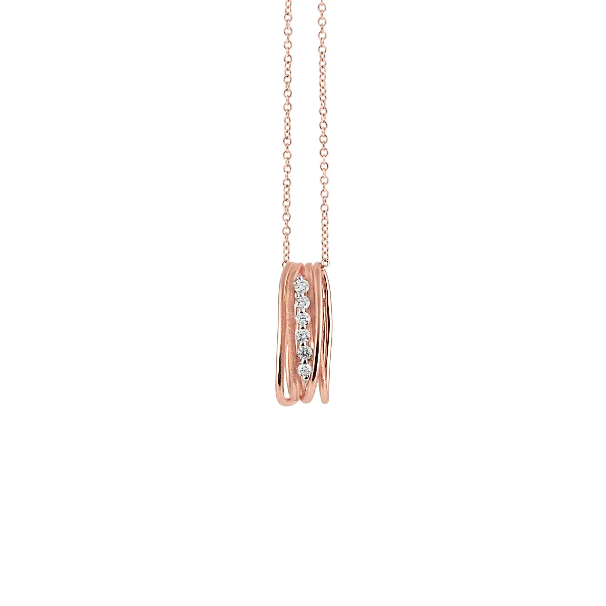 Il pendente Seta Annamaria Cammilli è un gioiello raffinato che esprime al massimo livello la ricerca stilistica del brand. Realizzato in oro 18kt e impreziosito da diamanti, questo pendente si distingue per le sue superfici morbide e vellutate, che richiamano la leggerezza e la fluidità della seta.